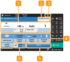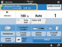 Kuvab seadeoleku, nagu paljundusmastaap, paberi suurus ja koopiate arv. Õigesti kopeerimiseks kinnitage kindlasti seaded. Seadete muutmiseks vajutage näidikujaotise all olevat nuppu.