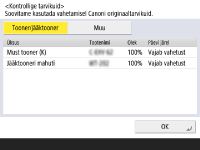 Järelejäänud kulutarvikute hulka saate kontrollida rakenduse Remote UI (Kaugkasutajaliides) abil. Masina oleku kontrollimine