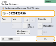 Teistesse riikidesse fakside saatmineSisestage sihtkoha määramiseks rahvusvaheline pääsukood, riigikood ja faksinumber (selles järjestuses). Kui teises riigis oleva sihtkohaga ühenduse loomine ei õnnestu, vajutage nuppu <Paus>, et määrata kahe numbri vaheline paus.