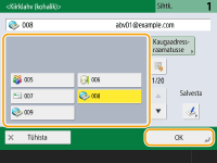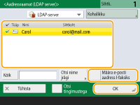 Samasse võrku ühendatud seadmesse saatmineSamas võrgus asuvasse seadmesse I-faksi teate saate saata otse, ilma meiliserverit kasutamata. Enne I-faksi teate saatmist muutke valik <Saata serveri kaudu> olekusse <Väljas>.