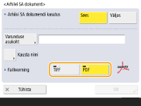 Kui valik <Arhiivi SA dokumendi> on seatud olekusse <Sees>, ei saa otsesaatmise funktsiooni kasutada.