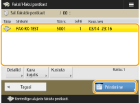 See funktsioon salvestab teatud tingimustele vastavad dokumendid määratud salvestuskohta (salajaste fakside postkasti). Salajaste fakside postkast koosneb mitmest kastist, millest igaühele saab eraldi paroolid määrata. Tingimuse määramisel, nagu ettevõtte A kõikide dokumentide salvestamine kasti nr 10, lubatakse vaadata ainult teile vajaminevaid dokumente. Parooli määramine võimaldab kaitsta konfidentsiaalseid dokumente selle eest, et volitamata isikud neid kogemata ei näeks. Kui juhtpaneeli indikaatoril Töötlemine/andmed põleb roheline tuli, järgige salvestatud dokumentide kontrollimiseks/printimiseks alltoodud juhiseid.