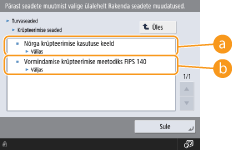 Kui määrate funktsiooni <Vormindamise krüpteerimise meetodiks FIPS 140> olekuks <Sees>, saate muuta TLS-side krüpteerimismeetodi vastavaks USA valitsuse heakskiidetud standardile FIPS (Federal Information Processing Standards) 140, kuid sel juhul kehtivad järgmised piirangud.