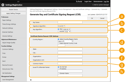 [Key and Certificate Settings].
