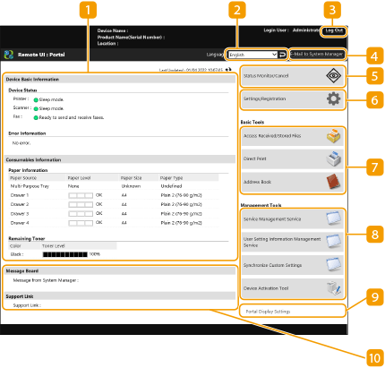 Kui kasutate seadme käitamiseks Remote UI (Kaugkasutajaliidest), ärge kasutage veebibrauseri nuppu [Back]. Kui kasutate nuppu [Back], ei pruugi leht korralikult muutuda.