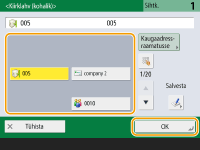 Määratud sihtkohtade koguarvu nägemineMääratud sihtkohtade koguarvu kuvatakse ekraani paremas ülaservas. Niimoodi saate enne saatmist veenduda, et sihtkohtade arv klapib.