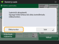 Kui valik <Kuva märguanne töö aktsepteerimisel> on seatud olekusse <Sees> saate kuvada valiku <Oleku monitor> järgnevalt kuvalt pärast saatmistöö vastuvõtmist. <Kuva märguanne töö aktsepteerimisel>