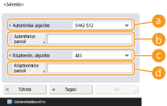 Kui kasutate autentimisparoolist erinevat parooli, tühistage valik <Kasuta sama parooli kui autentimisel>, vajutage <Krüpteerimise parool> ja sisestage parool.