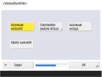Vajutage <Autom. VV> Ainult faksifunktsiooni kasutamisel või <Faks/telefon (autom.lülitus)> kui seadmega on ühendatud telefon või telefonitoru, ning vajutage <OK>.