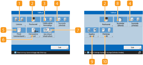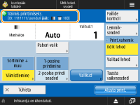 Kuvab sätte oleku (nt prinditav paberiformaat ja prinditavate lehekülgede arv). Kontrollige, kas seaded on õigesti printimiseks kinnitatud. Seadete muutmiseks vajutage näidikujaotise all olevat nuppu. Printimiste arvu muutmiseks sisestage number numbriklahvide abil.