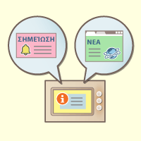 Περιεχόμενο και μηνύματα που έχουν οριστεί από τον διαχειριστή μπορούν να εμφανίζονται στην οθόνη αφής για την ενημέρωση των χρηστών. Αυτή η λειτουργία είναι χρήσιμη για την κοινή χρήση πληροφοριών στο γραφείο.