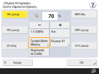 Μπορείτε να μεγεθύνετε ή να σμικρύνετε καθορίζοντας την κλίμακα αντιγραφής (%). Μπορείτε να ορίσετε τις κατακόρυφες και οριζόντιες κλίμακες ξεχωριστά.