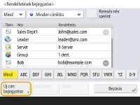 Válassza a <Fax>, <E-mail>, <I-Fax>, vagy <Fájl> lehetőséget a bejegyezni kívánt rendeltetési hely típusaként.