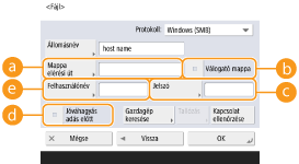 Szükség lehet a felhasználónév és a jelszó megadására. Adja meg a készülék LDAP-szerveren bejegyzett felhasználónevét és jelszavát. Ha nem használja a hitelesítési információt, a Távvezérlésben a felhasználónév és a jelszó mezővel végzett keresés üresen marad.