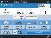 A <Főmenü> képernyőn az Alapképernyő megjelenítéséhez nyomja meg a funkciógombokat, ahol olyan alapfunkciókat érhet el, mint a másolás, faxolás és a beolvasás. Bár az Alapképernyőn a kijelző és a beállítási elemek a funkcióktól függően változnak, igényeinek megfelelően módosíthatja a beállításokat. Alapképernyők személyre szabása