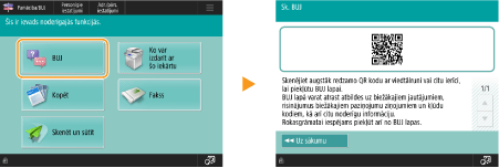 Nospiežot <BUJ> tiek parādīts QR kods. Pēc tam varat atvērt iekārtas BUJ lapu, skenējot šo QR kodu mobilajā ierīcē, piemēram, viedtālrunī vai planšetdatorā.