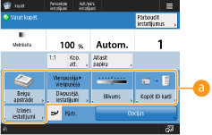 Pamatfunkciju ekrānā novietoto iestatījumu vienumu skaits un parādāmā atrašanās vieta atšķiras atkarībā no funkcijām.