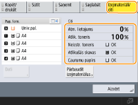 Izejmateriālu atlikušo daudzumu varat pārbaudīt, izmantojot Remote UI (Attālais lietotāja interfeiss). Iekārtas statusa pārbaude
