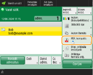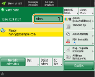 Skenēšanas pamatfunkciju ekrānā norādiet adresātu. Skenēšanas pamatdarbību ekrāns