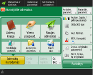Skenavimo ir siuntimo funkcijų pagrindinių savybių ekranas