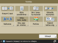 Kai kurie čia aprašyti režimai yra susiję su <Kopija> arba <Skenavimas ir siuntimas> funkcijos režimais.