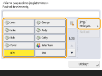 Jei norite keisti arba naikinti adresatų, susietų su vieno paspaudimo mygtukais, informaciją, žr. Vieno paspaudimo mygtukuose įregistruotų adresatų redagavimas.