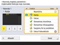 Galite sukurti spartųjį klavišą funkcijoms ekrane <Pagrindinis>. Šiuo klavišu galite atsidaryti skirtingas funkcijas negrįždami į ekraną <Pagrindinis>. Norėdami sukurti spartųjį klavišą, prisijunkite su administratoriaus teisėmis.