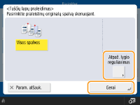 (Būkl. kontrolė) <Kopija/atspaudas> <Užduoties žurnalas> pasirinkite dokumentą <Detaliau> patikrinkite skaičių, kuris rodomas dalyje <Orig. lapų skaičius.>.Būsenos ekrane ir ataskaitos rodinyje rodomas skaičius, įskaitant tuščius lapus. Kopijų / spaudinių būsenos tikrinimas