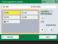 <Naujų adrsat. registravim.>, <Det. inform./redagavimas> ir <Naikinti> dalyje <Įreg./redagav.>, Adresų knyga (vietinė) ekranas gali būti naudojama naujiems adresatams registruoti, informacijai tikrinti ir adresatams redaguoti / šalinti.