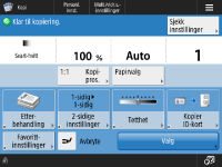 Du kan endre innstillingene for skjermbildet som vises, for eksempel hvilket skjermbilde som vises rett etter at du slår maskinen på, og om meldingen vises for gjenværende papir og toner. <Display-innstillinger>