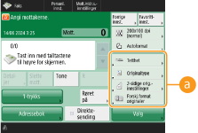 Registrere i <Favorittinnst.>I <Favorittinnst.> kan du registrere ofte brukte prosedyrer for kopiering samt ofte spesifiserte mottakere og innstillinger for skanning. Hvis du vl ha mer informasjon, kan du se Registrere en kombinasjon av ofte brukte funksjoner.