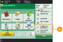 etterfulgt av <Endre standardinnstillinger>. Hvis du logger på maskinen med personlig godkjenningsstyring (Logge på maskinen) før du utfører denne innstillingen, er den registrert som din egen personlige standardinnstilling (Liste over elementer som kan personlig tilpasses). |