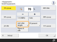 Hvis du angir <Auto>, må du velge papirstørrelse manuelt. Hvis du ikke velger et papirformat, innstilles kopiprosenten automatisk i henhold til papirformatet som er lagt i skuff 1.