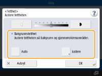 Du kan justere tettheten til bakgrunnen. Dette gjør at du kan lage klare kopier av originaler som aviser eller originaler med farget bakgrunn.