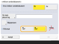 Du kan ikke utføre direkte sending hvis du angir <Arkiver sendedokument> til <På>.