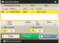 Hvis du trykker på <Detaljer>, kan du sjekke informasjon om dokumentet, inkludert avsendernavn og antall mottatte sider. Hvis du trykker på <Vis bilde>, kan du sjekke dokumentinnholdet og velge og slette sider.