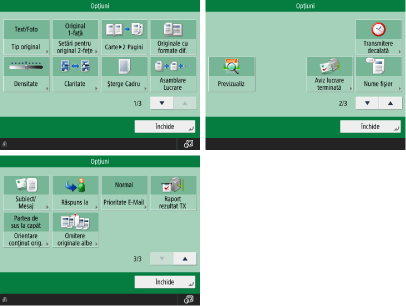 Ecranul Caracteristici de bază pentru scanare şi transmitere