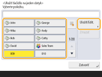 V záujme zvýšenia pohodlia je možné uložiť často používané miesto určenia do tlačidla na jeden dotyk. Vďaka tomu dokážete rýchlo špecifikovať miesto určenia jednoduchým stlačením tlačidla. Popri uložení čísla faxu alebo e-mailovej adresy do tlačidla na jeden dotyk môžete uložiť aj umiestnenie priečinka súborového servera (adresa IP a cesta) na použitie pri ukladaní naskenovaných údajov.