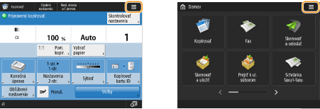 zobrazeného na obrazovke <Domov> a obrazovke základných funkcií môžete prispôsobiť obrazovku, napríklad zmeniť usporiadanie tlačidiel alebo vytvoriť klávesovú skratku. Prispôsobenie displeja dotykového panela