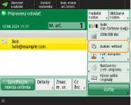 Formát: „rok, mesiac, deň, hodina, minúta a sekunda uloženia súboru (14-ciferné).prípona súboru“, napríklad „20151030133541.jpg“ Predmet e-mailuAutomaticky sa nastaví predmet zadaný v poli <Implicitný predmet> (<Implicitný predmet>). Ak chcete špecifikovať iný predmet, zmeňte dané nastavenie alebo ho špecifikujte zakaždým, keď odosielate e-mail (Špecifikovanie nastavení e-mailu).