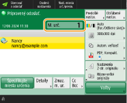 Ak chcete po skenovaní vybrať miesto určenia na obrazovke <Tlač. na jeden dotyk>, pod položkou <Implicitné okno> nastavte možnosť <Tlač. na jeden dotyk>. Činnosť potrebnú na odoslanie naskenovaných dokumentov do toho istého miesta určenia možno zredukovať. <Implicitné okno>