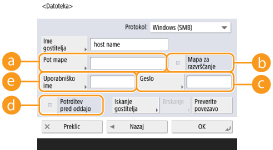 Ta element je prikazan le, če je na zaslonu <Protokol> izbrana možnost <Windows (SMB)> ali <FTP>.