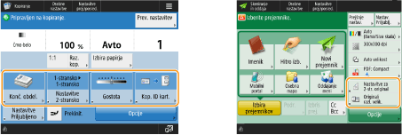 Spremenite lahko gumbe za nastavitve na zaslonih z osnovnimi funkcijami (za kopiranje, pošiljanje faksov in optično branje). Prav tako lahko prikažete različen zaslon z osnovnimi funkcijami, ki je prilagojen posameznemu prijavljenemu uporabniku.