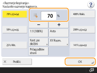 Kopije lahko povečate ali pomanjšate tako, da določite razmerje kopiranja (%). Posamično lahko določite navpično ali vodoravno razmerje.