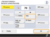 Če nastavite <Avto>, morate ročno izbrati velikost papirja. Če ne izberete velikosti papirja, je razmerje kopiranja avtomatsko izbrano tako, da ustreza velikosti papirja, vloženega v kaseto 1.