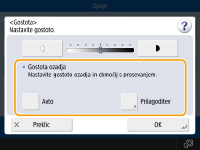 Prilagodite lahko gostoto celotnega dokumenta. Če na primer povečate gostoto kopiranja, lahko lažje preberete neizrazite znake, napisane s svinčnikom.
