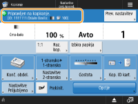 Prikazuje stanje nastavitve, kot so razmerje kopiranja, velikost papirja in število kopij. Za pravilno kopiranje potrdite nastavitve. Za spreminjanje nastavitev pritisnite gumb pod zaslonom.
