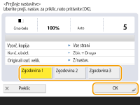 Lahko prikličete predhodno uporabljene nastavitve kopiranja. Pred kopiranjem lahko spremenite podrobnosti priklicanih nastavitev.