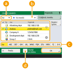 Iskanje prejemnikov po prvi črki