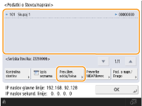 <Prev. konfig. naprave>, lahko preverite možnosti, ki so na voljo v napravi.Za informacije o pogojih štetja se obrnite na prodajalca ali servis.